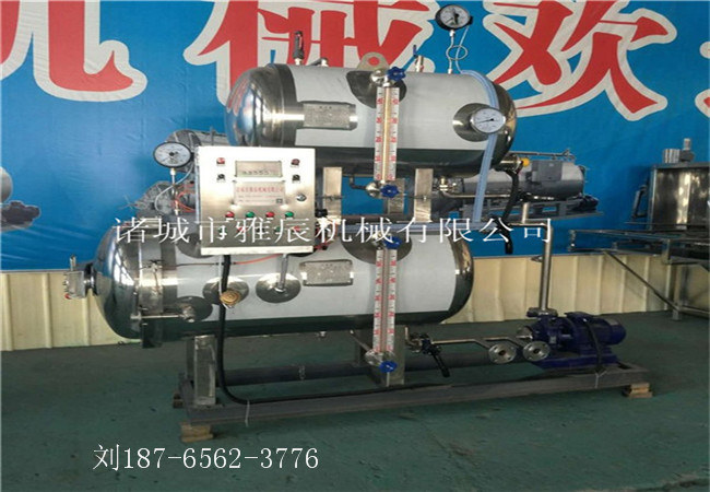 電加熱水浴殺菌鍋鍋內(nèi)壓力由壓力變送器隨著鍋內(nèi)壓力的升降,把信號輸送到壓力控制儀,進行鍋內(nèi)壓力自動條整,使鍋內(nèi)壓力始終處于在規(guī)定的范圍內(nèi)。如超出,可自動停止;如下降,可自動加壓保護。使鍋內(nèi)產(chǎn)品處于同等壓力下進行殺菌。